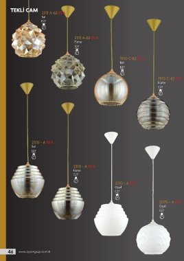 TEKLİ CAM 2311 A-62 65 ₺ Bal E27 2311 A-62 65 ₺ Füme E27 1910 C-62 50 ₺ Bal E27 1910 C-62 50 ₺ Füme E27 2310 - A 55 ₺ Bal E27 2310 - A 55 ₺ Füme E27 2310 - A 55 ₺ Opal E27 2070 - A 55 ₺ Opal E27 46 www.aysangrup.com.tr