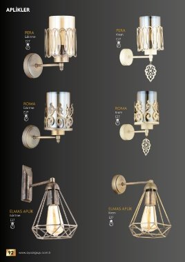 APLİKLER PERA PERA Krem Eskitme E27 E27 ROMA Eskitme ROMA E27 Krem E27 ELMAS APLİK ELMAS APLİK Krem Eskitme E27 E27 92 www.aysangrup.com.tr